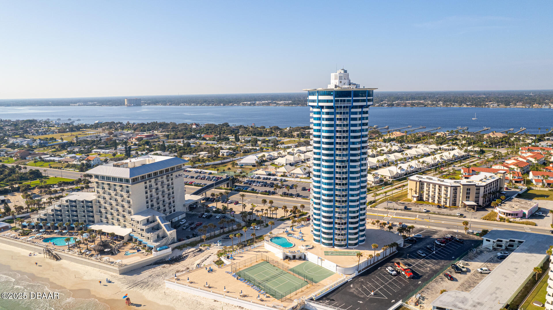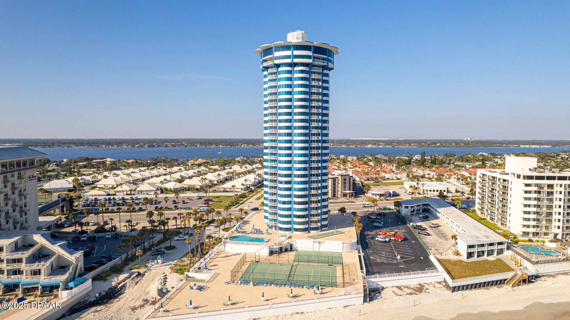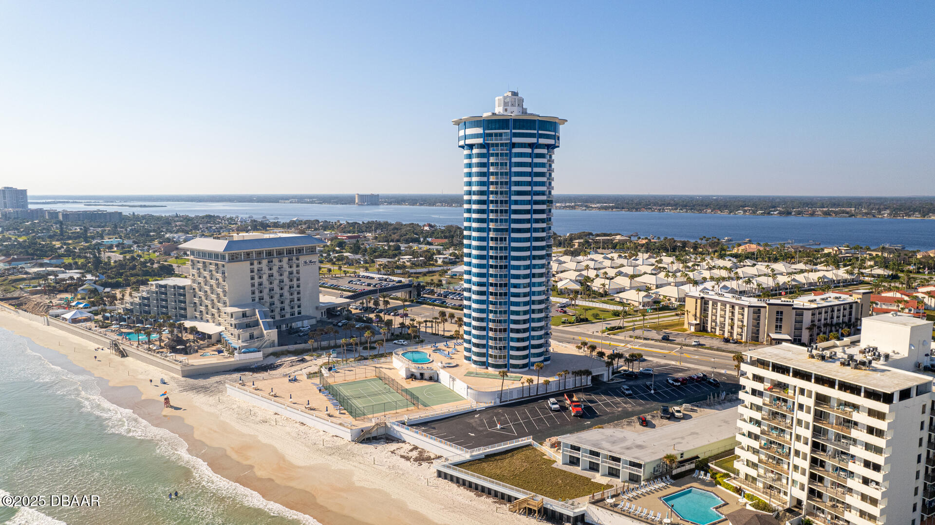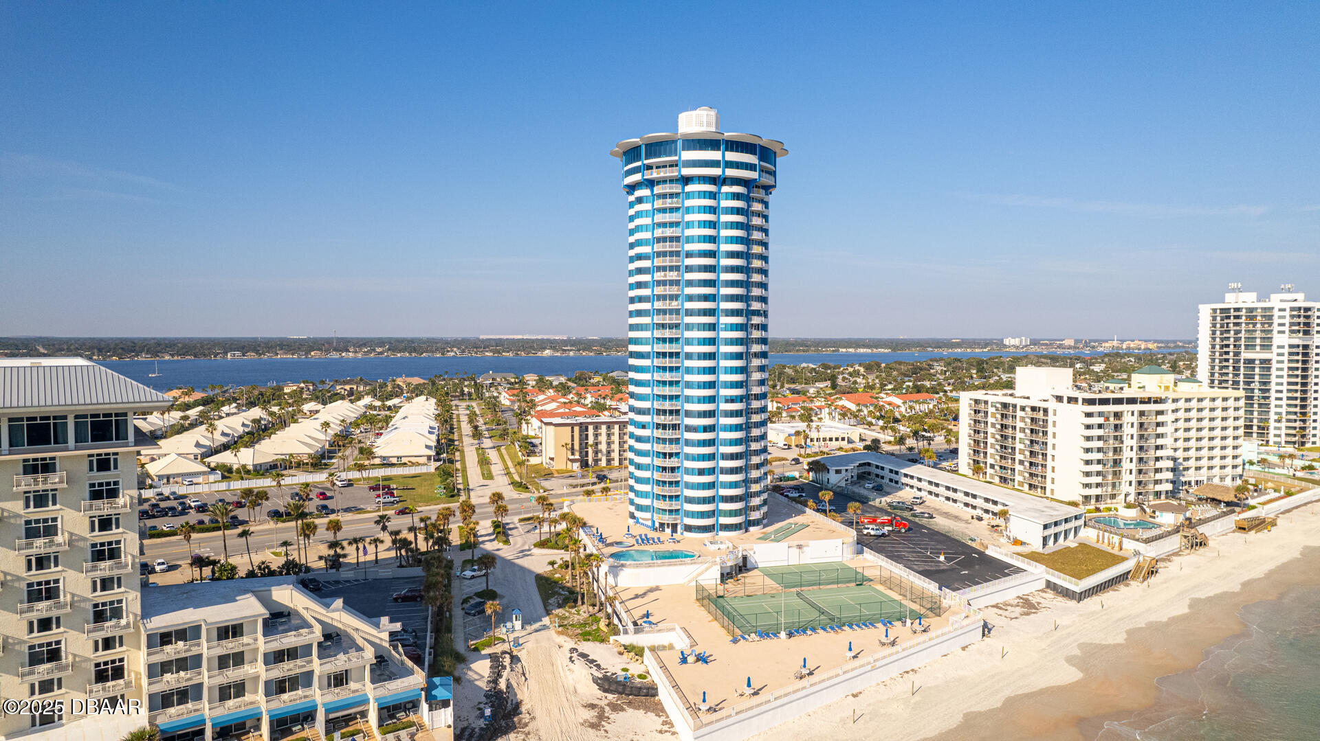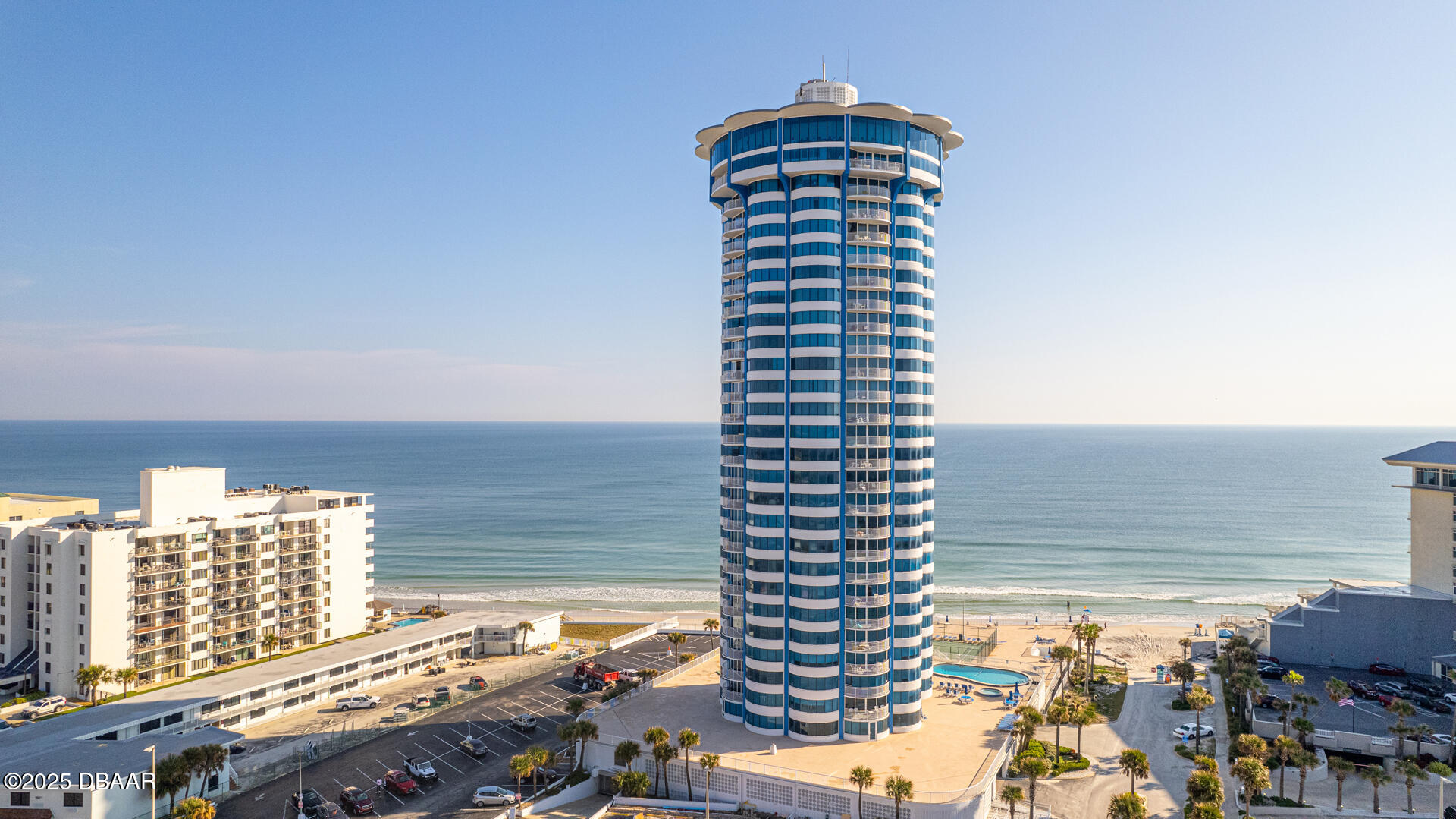 2.6 miles North of Dunlawton, but South of Silver Beach on A1A. The 29-story round condo by The Shores Resort & Spa